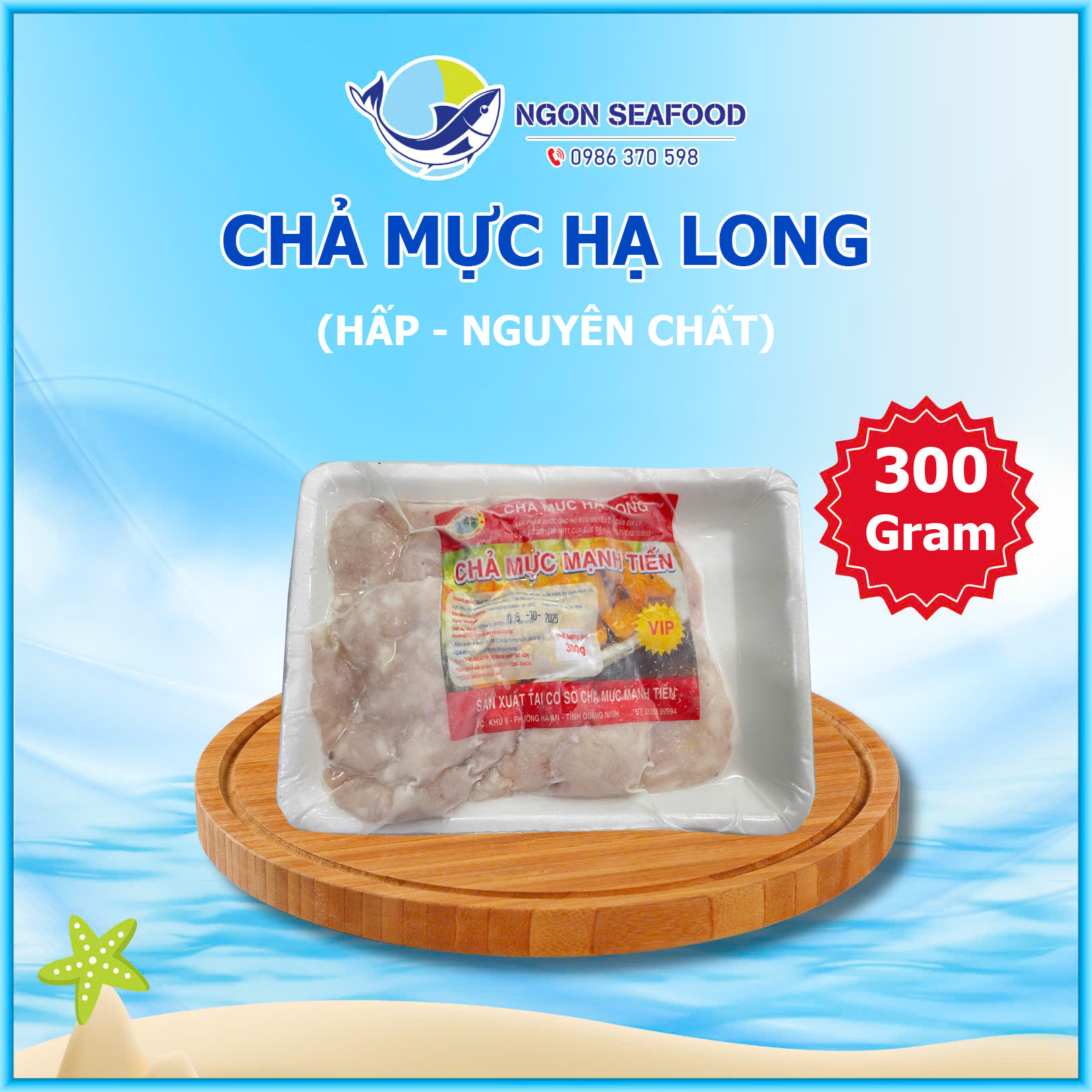 Liên hệ ngay với Ngon Seafood để đặt mua sản phẩm Chả Mực Giã Tay Hạ Long (Hấp) - Khay 300gr trứ danh, mang tinh hoa của ẩm thực biển cả đến bữa cơm gia đình bạn!