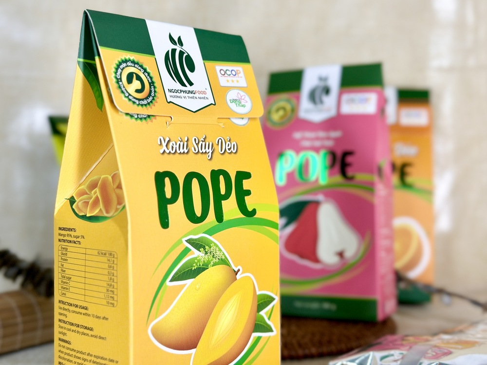 Công ty Ngọc Phụng luôn đề cao chất lượng và quan tâm đến sức khỏe của khách hàng, với khát vọng mang đến những sản phẩm hoàn toàn từ thiên nhiên, tươi ngon và an toàn. Xoài Sấy Dẻo POPE đã có mặt trên các kệ hàng đặc sản, sàn thương mại điện tử, và trở thành món quà đầy ý nghĩa trong các dịp lễ. Thưởng thức sản phẩm của chúng tôi, quý khách hàng sẽ cảm nhận được hương vị rất riêng và đặc trưng của trái xoài Cao Lãnh – một đặc sản quê hương. Sản phẩm là minh chứng cho nỗ lực không ngừng nghỉ của Ngọc Phụng trong việc gìn giữ và truyền tải hương vị tự nhiên nhất đến tay người tiêu dùng.