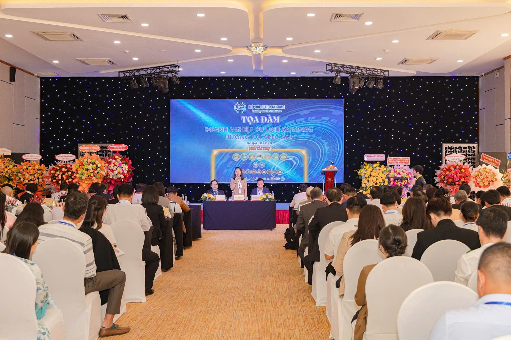 Trong khuôn khổ chương trình, tọa đàm “Doanh nghiệp du lịch An Giang hướng tới APEC 2027” ghi nhận nhiều tham luận và ý kiến đóng góp thiết thực từ Tập đoàn Sun Group, Vingroup, Viettel, PGS.TS Nguyễn Văn Sánh, Hội Lữ hành G7 Việt Nam và Viện Nghiên cứu Phát triển Kinh tế Biển, góp phần định hướng chiến lược phát triển du lịch An Giang trong giai đoạn tới.